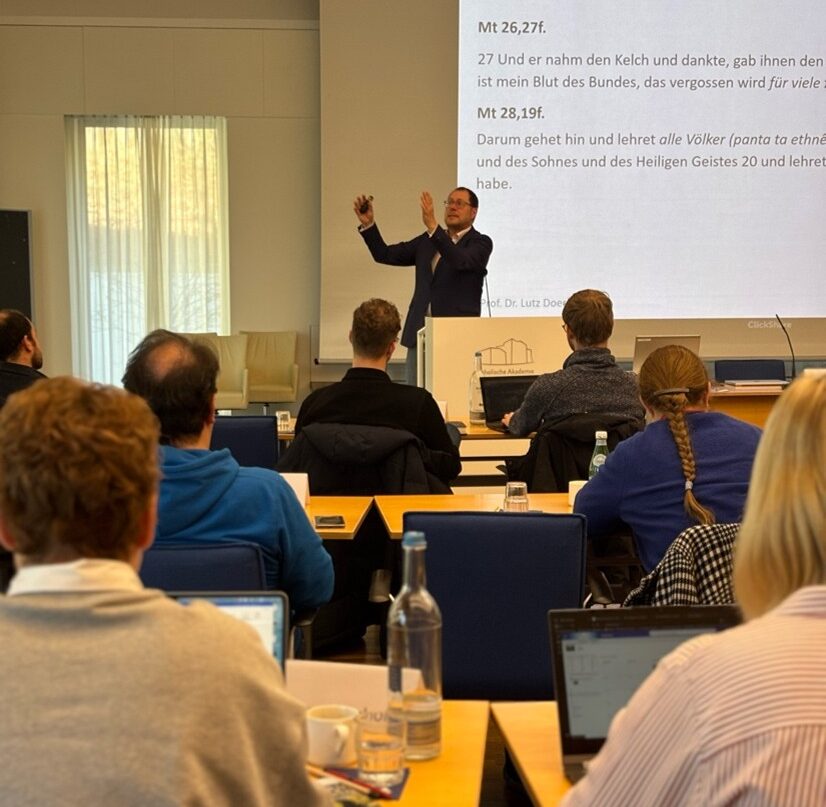 Den inhaltlichen Auftakt am Mittwochvormittag bildete der Vortrag von Prof. Dr. Lutz Doering. Unter dem Titel „Christusgläubige und Volk Israel – Modelle ihrer Verhältnisbestimmung im Neuen Testament und in seiner Rezeption“ ging er der Frage nach, wie sich eine Substitution Israels vermeiden lässt. Anhand neutestamentlicher Texte, insbesondere aus den Paulusbriefen und dem Matthäusevangelium, zeigte Doering auf, wie komplex und vielschichtig das frühe christlich-jüdische Verhältnis war und dass pauschale Ersetzungsmodelle weder dem biblischen Befund noch einer verantworteten Theologie gerecht werden. Die intensive Aussprache zu seinen Ausführungen machte deutlich, wie sehr diese exegetischen Fragen bis heute das Selbstverständnis christlicher Theologie und religiöser Bildung berühren.