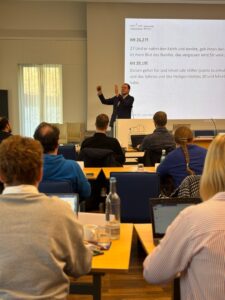 Den inhaltlichen Auftakt am Mittwochvormittag bildete der Vortrag von Prof. Dr. Lutz Doering. Unter dem Titel „Christusgläubige und Volk Israel – Modelle ihrer Verhältnisbestimmung im Neuen Testament und in seiner Rezeption“ ging er der Frage nach, wie sich eine Substitution Israels vermeiden lässt. Anhand neutestamentlicher Texte, insbesondere aus den Paulusbriefen und dem Matthäusevangelium, zeigte Doering auf, wie komplex und vielschichtig das frühe christlich-jüdische Verhältnis war und dass pauschale Ersetzungsmodelle weder dem biblischen Befund noch einer verantworteten Theologie gerecht werden. Die intensive Aussprache zu seinen Ausführungen machte deutlich, wie sehr diese exegetischen Fragen bis heute das Selbstverständnis christlicher Theologie und religiöser Bildung berühren.